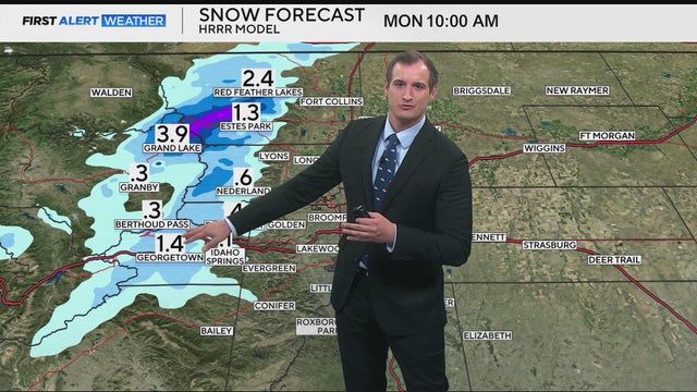 Rain and mountain snow move in Sunday night with chilly temperatures to start the new week across Colorado.
